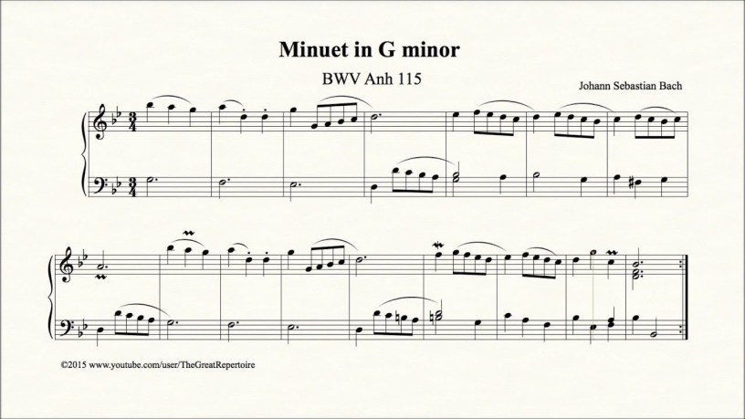 Każdy, kto choć trochę uczył się gry na fortepianie, z pewnością grał ten utwór, myśląc że skomponował go Jan Sebastian Bach. Trudno się dziwić, pochodzi on ze zbiorku dla początkujących pianistów Łatwe utwory. Okazuje się jednak że Menuet g-moll, podobnie jak kilka innych drobnych utworów z tego tomu, nie jest spuścizną lipskiego kantora.