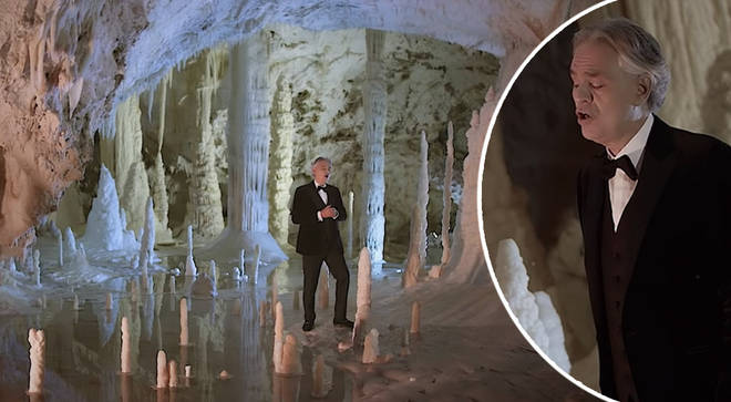 Pośród stalaktytów i stalagmitów jaskiń Frasassi we Włoszech, Bocelli zaśpiewał Cichą noc.